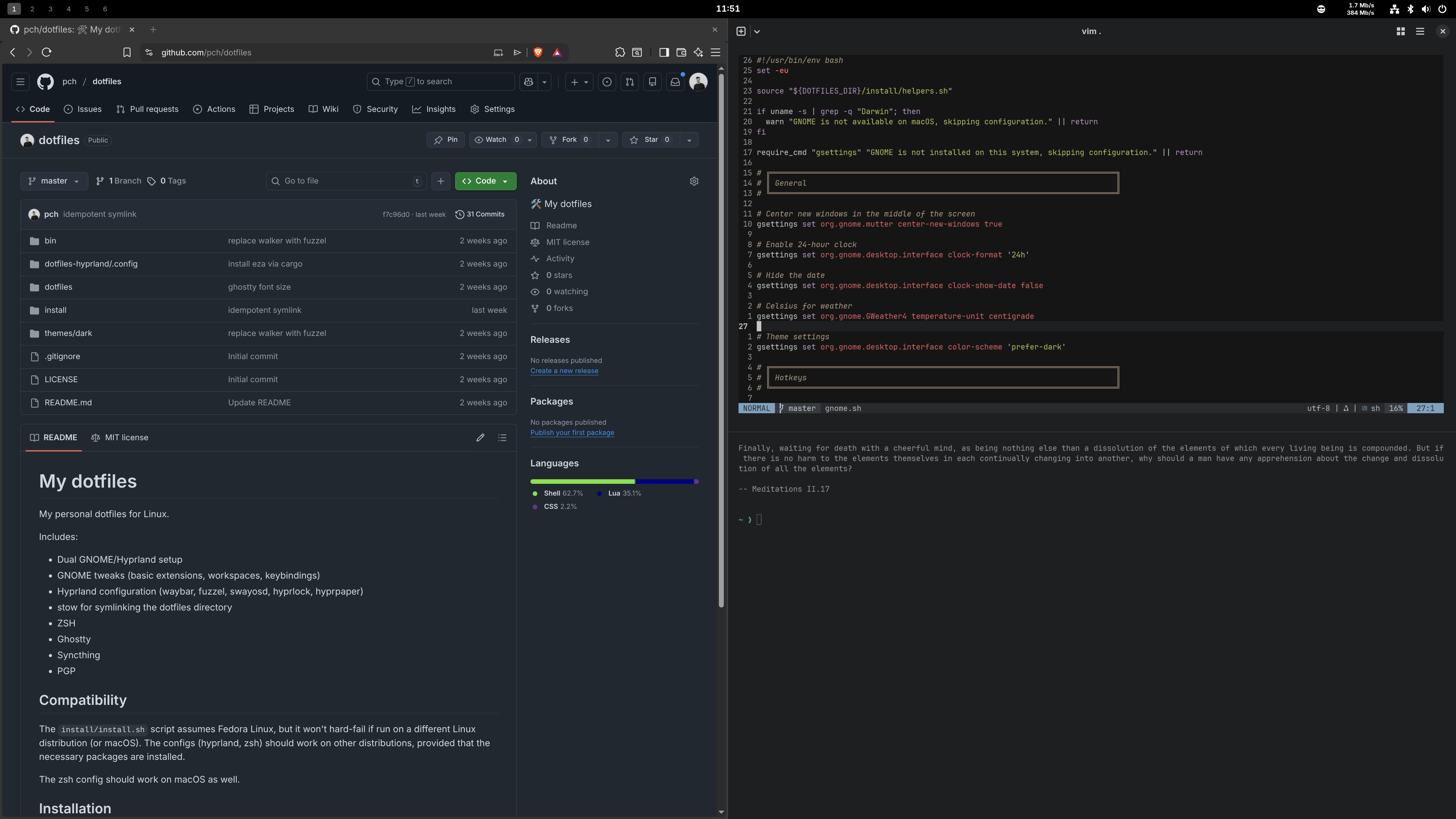 Hyprland can be rigid and bare-bones, with too much manual configuration and TUIs. GNOME made me feel more at home. It’s much closer to macOS: a complete desktop environment with a decent set of defaults. And it looks nice out of the box.